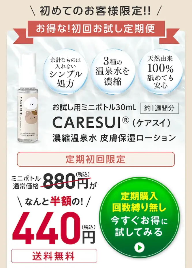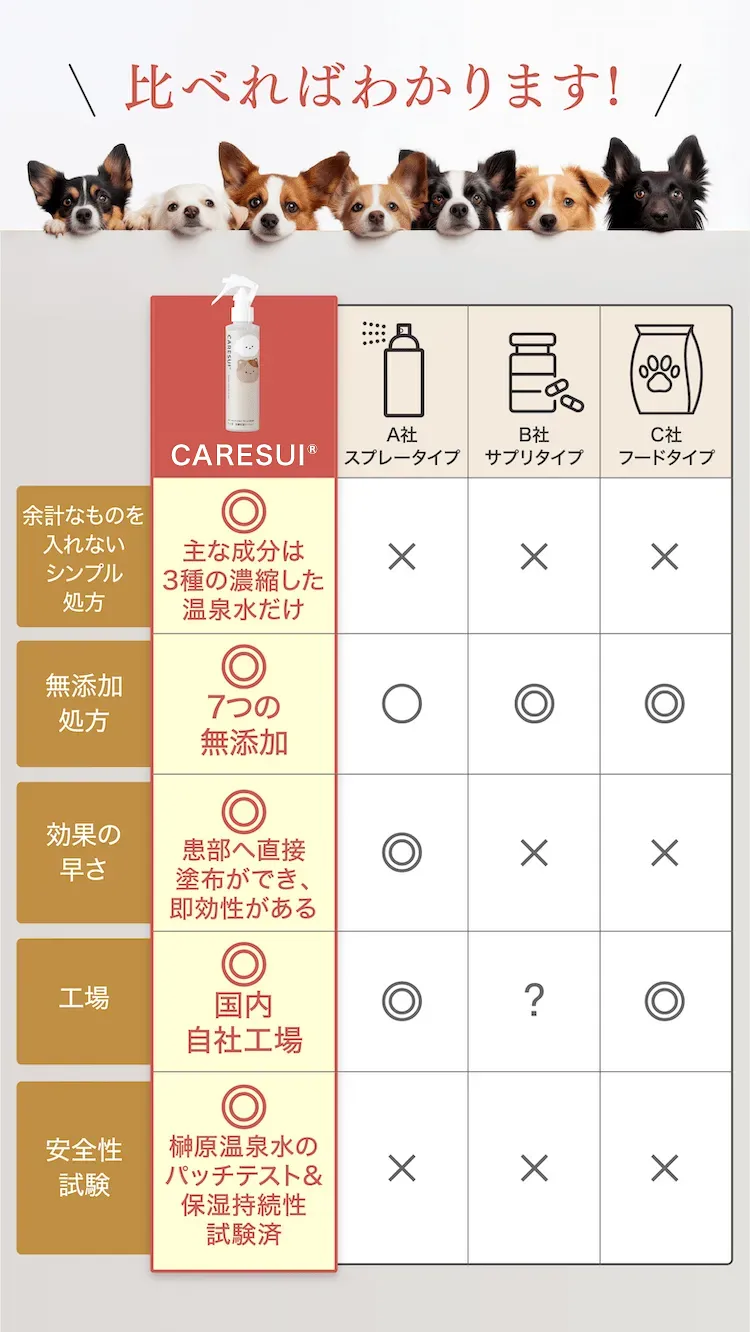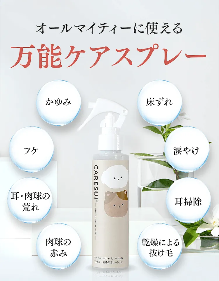 気づいたらほとんど痒がらなくなりました!こまめにCARESUIを使ったことでとてもきれいになりました。温泉水だから口周りも安心して使えます。
