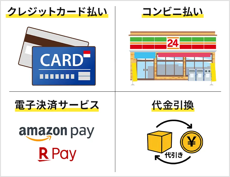 クレジット決済、コンビニ後払い、代引引換はもちろん!